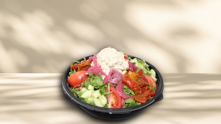 Tuna Salad, Roasted Sweet Peppers, Fresh Tomato, Cucumber, Pickled Red Onion, Baby Arugula with Citrus Vinaigrette, House Croutons.